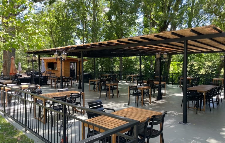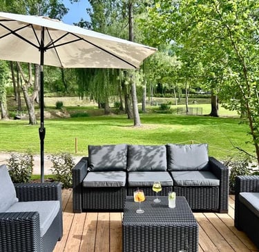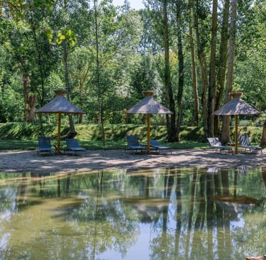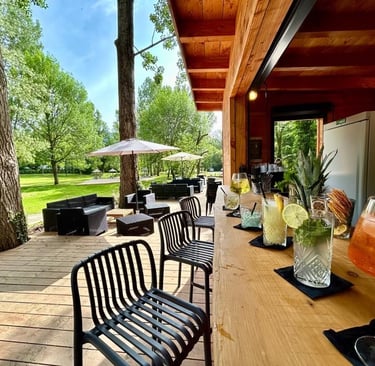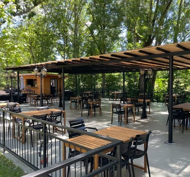 Découvrez notre espace Guinguette, où vous pourrez profiter de notre bar à vin et cocktails sur notre terrasse au bord de la rivière. Vivez au rythme de la musique légère et des conversations animées, savourant chaque instant de ce paradis estival où le temps semble suspendu.