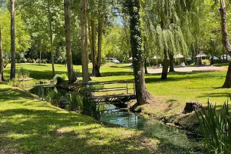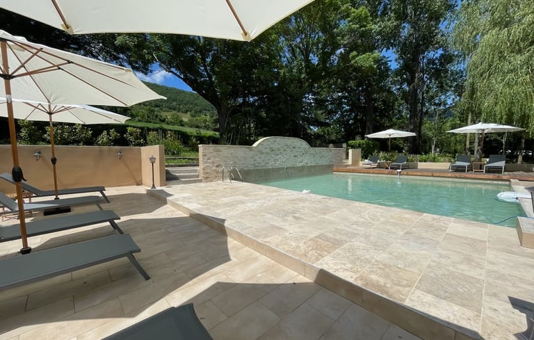 La rivière le Durzon prend sa source à 6km sous forme d'une résurgence magnifique d'où plongent les spéléos pour nous faire découvrir un monde encore inconnu. Et pour vous faire profiter des bienfaits de cette eau, nous créons un bassin naturel.